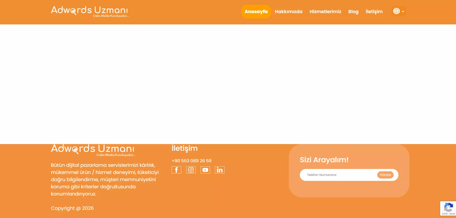 Following the implementation, the Adwords Uzmanı website reached a faster, more accessible, and more visible position in search engines. A significant increase was achieved in organic traffic, user engagement, and contact inquiries. This project became a successful example of the strategic, technical, and content-driven solutions that Crabs Media delivers in the field of performance marketing and digital advertising.