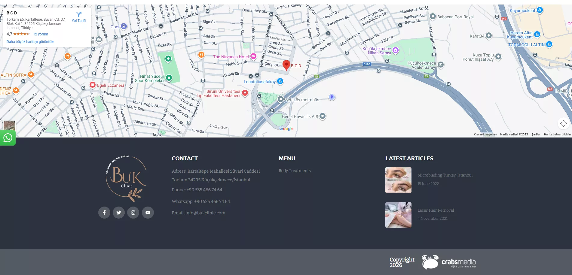 Buk Clinic gained a stronger and more professional online presence with this project. Thanks to the SEO friendly infrastructure, modern design, and clear content plan, the website became faster, more visible, and more effective. This collaboration stands as one of the successful aesthetic projects in the Crabs Media portfolio.