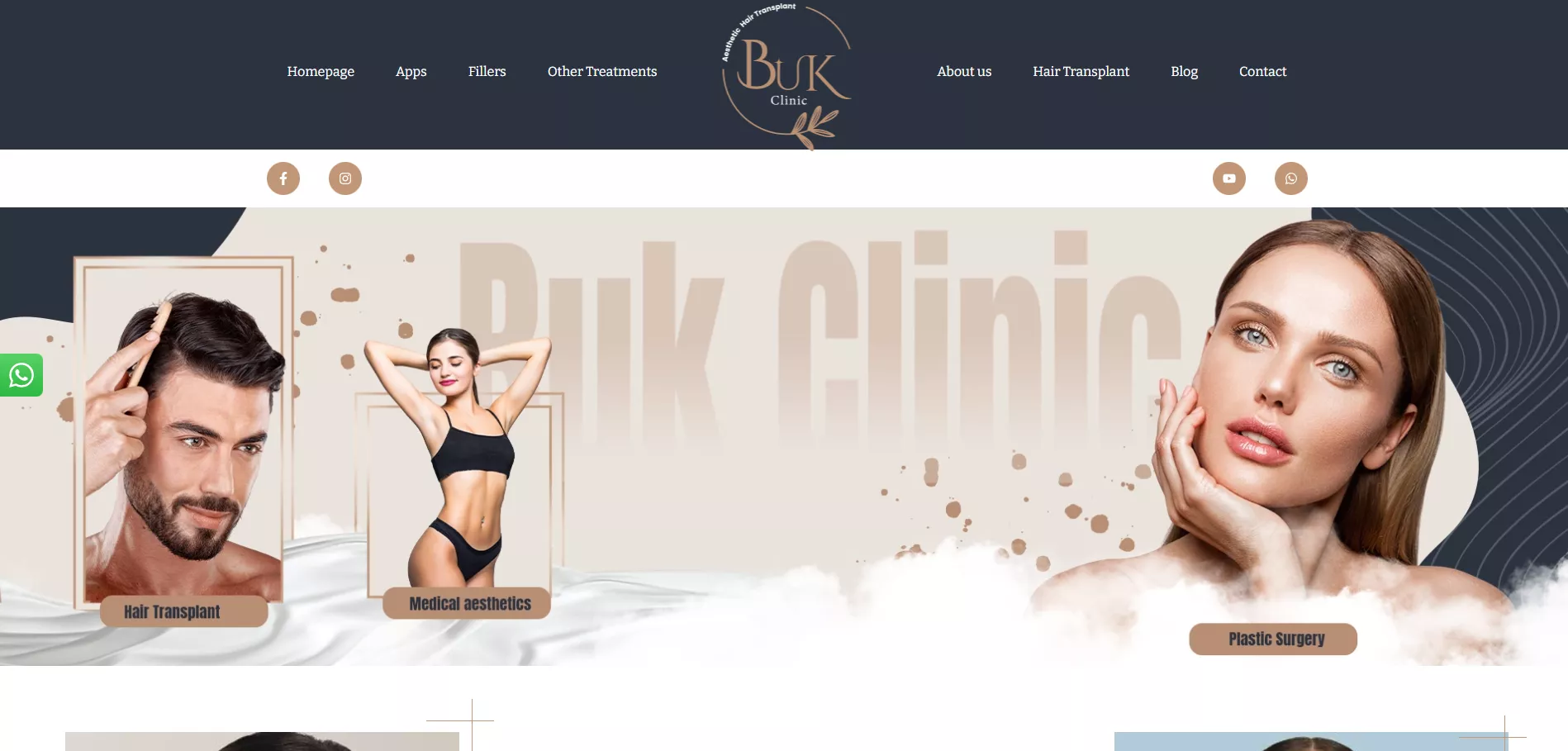 Buk Clinic aimed to reflect its aesthetic and beauty treatments in the digital world with the same level of quality, transparency, and trust. In this direction, the current state of the website was analyzed in detail in terms of user experience, design language, mobile compatibility, and SEO performance. The goal was to create a clean yet impactful digital structure where visitors could quickly access the services they are looking for.