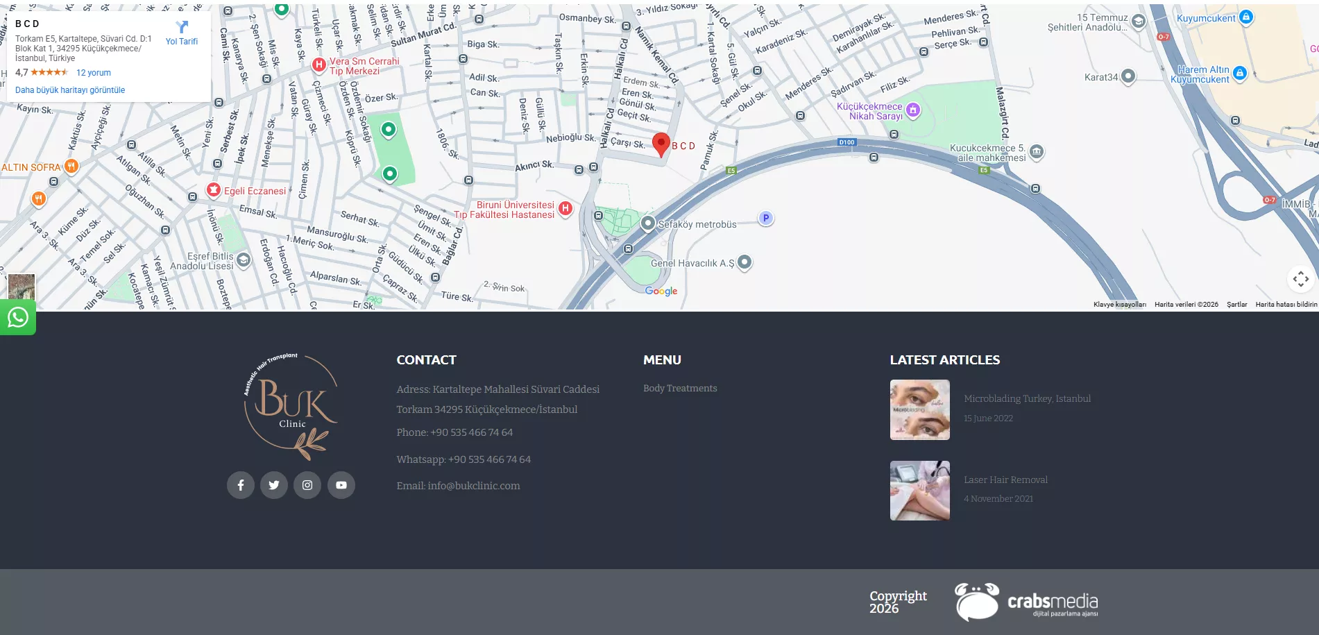 Following the implementation, the Buk Clinic website reached a faster, more accessible, and more visible position in search engines. A significant increase was achieved in organic traffic, user engagement, and appointment requests. This project became a successful example of the result-driven and sustainable digital solutions that Crabs Media delivers specifically for the aesthetics and beauty sector.
