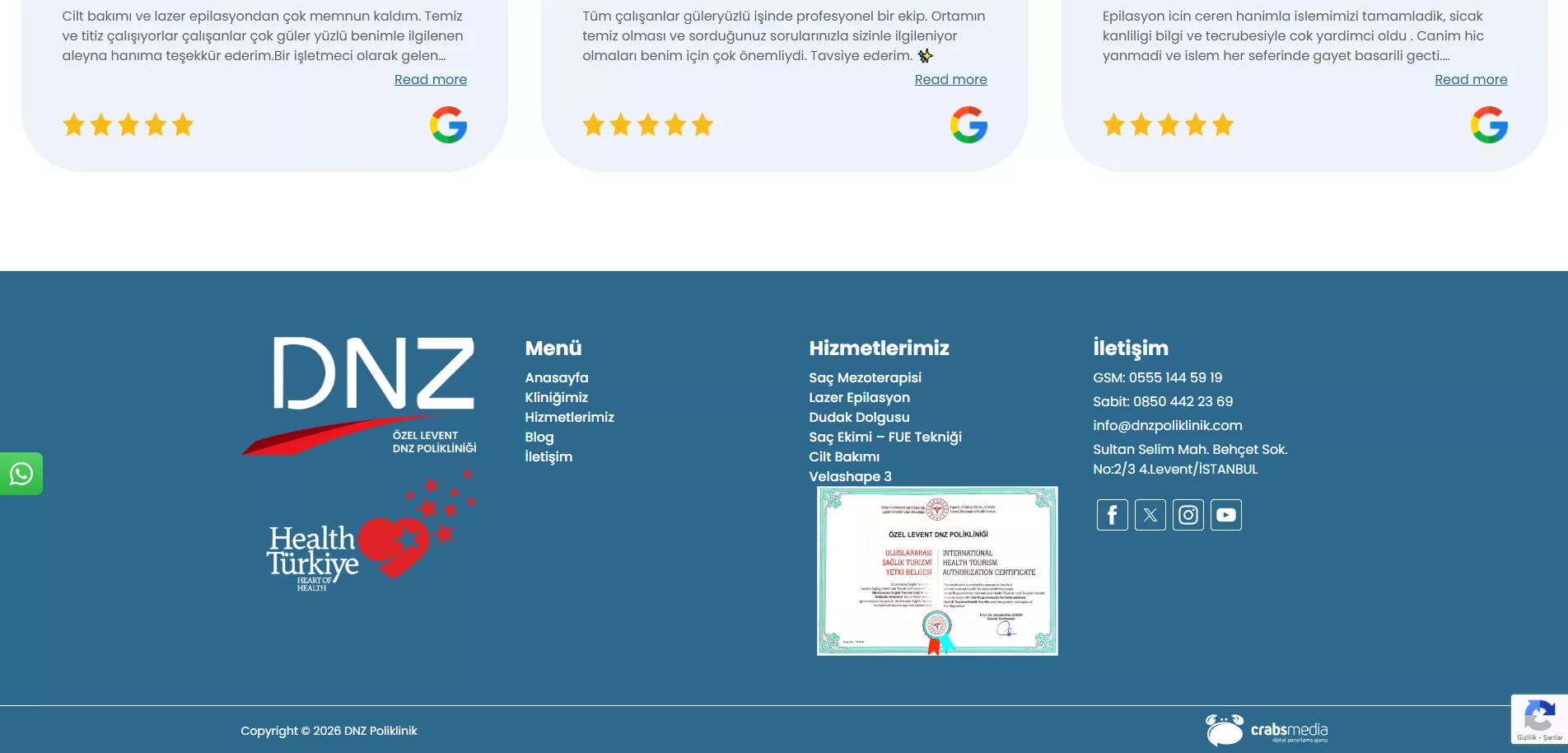 Following the implementation, the DNZ Poliklinik website achieved a faster, more stable, and more accessible structure. While organic visibility increased, a noticeable rise was also observed in time spent on the site and contact inquiries. This project became a successful example of the strategic, technical, and content-driven digital solutions that Crabs Media delivers specifically for the healthcare sector.