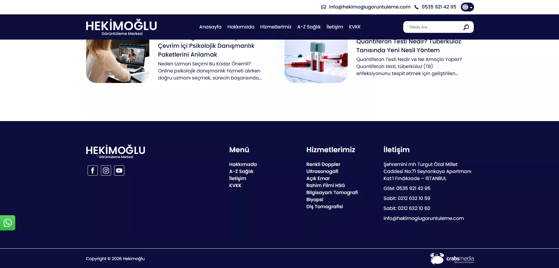 Hekimoğlu Görüntüleme Merkezi aimed to reflect the same level of precision and reliability online as it offers in medical imaging services. The existing website structure was no longer meeting user expectations. Pages loaded slowly, and service information was not clearly visible in search results. The main goal was to create a fast, clear, and easy to navigate website.