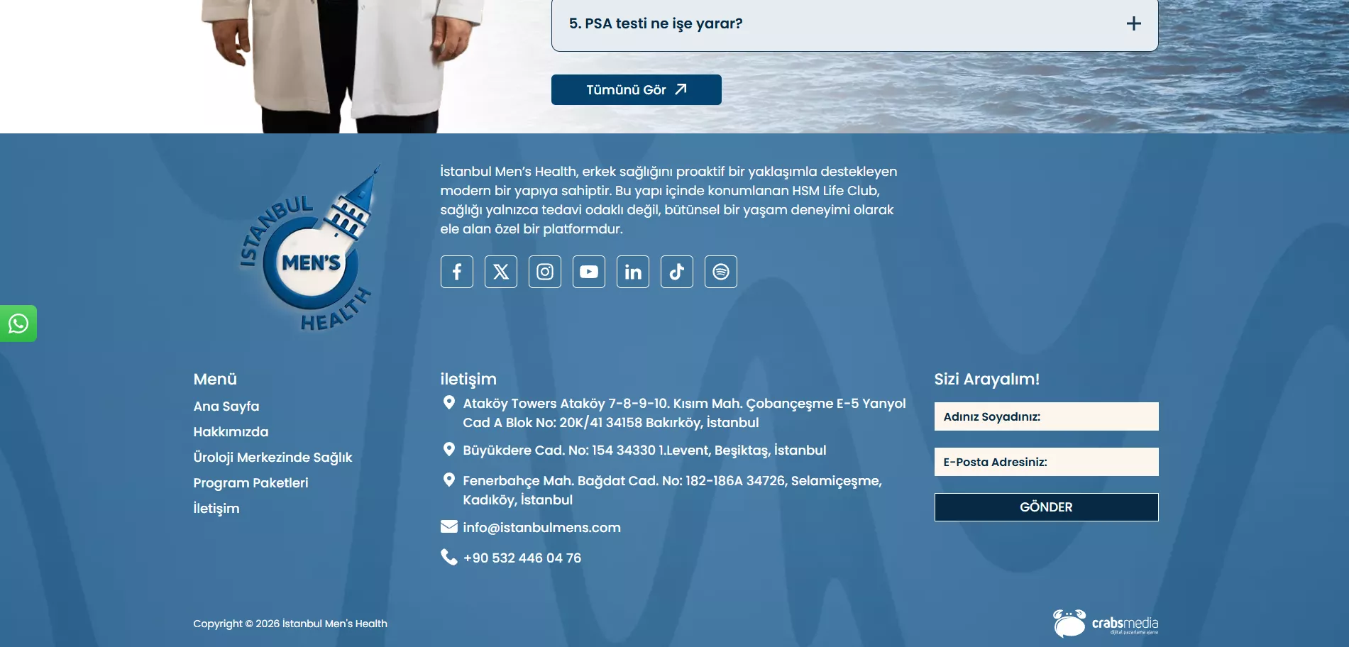 During the planning phase, user experience was placed at the center, and service pages were restructured with a clear hierarchy. Presenting men’s health services in a simple and easy-to-understand manner was prioritized. At this stage, the project progressed with a strategy where design and technical processes were handled holistically, and the Crabs Media approach was felt naturally throughout the content. The website was optimized to function seamlessly on both desktop and mobile devices.