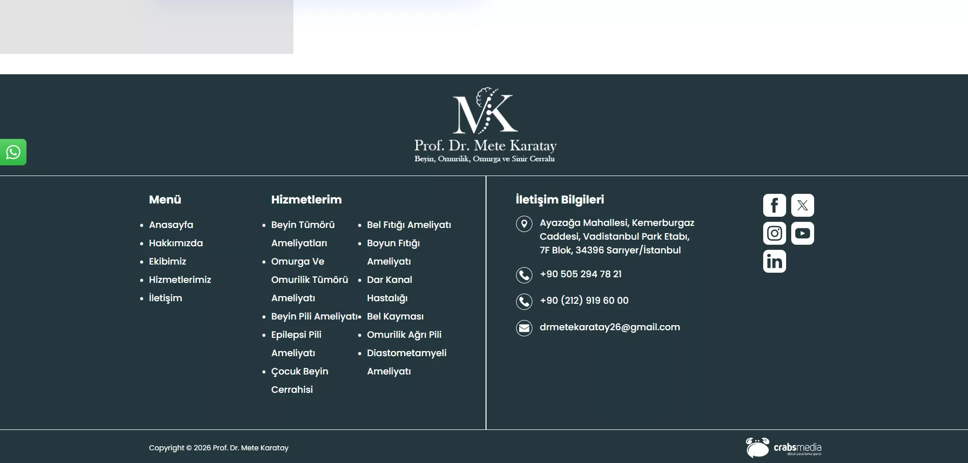 Following the implementation, the Prof. Dr. Mete Karatay website reached a faster, more accessible, and more visible position in search engines. A significant increase was achieved in organic traffic, user engagement, and contact inquiries. This project became a strong example of the strategic, technical, and content-driven digital solutions that Crabs Media delivers in the fields of academia and healthcare.