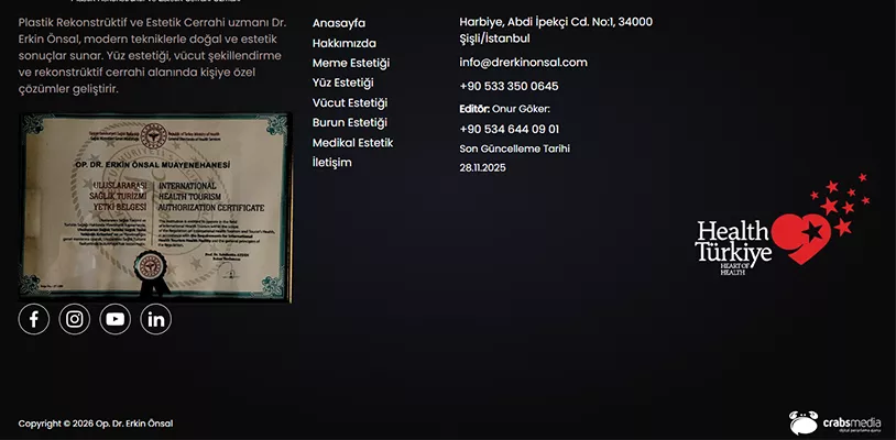 Erkin Önsal wanted his professional vision to be reflected clearly and confidently in the digital space. The existing website did not fully meet expectations in terms of speed, clarity, or search visibility. A clean structure, clear messaging, and a strong technical base were needed to build trust with visitors and improve online reach.