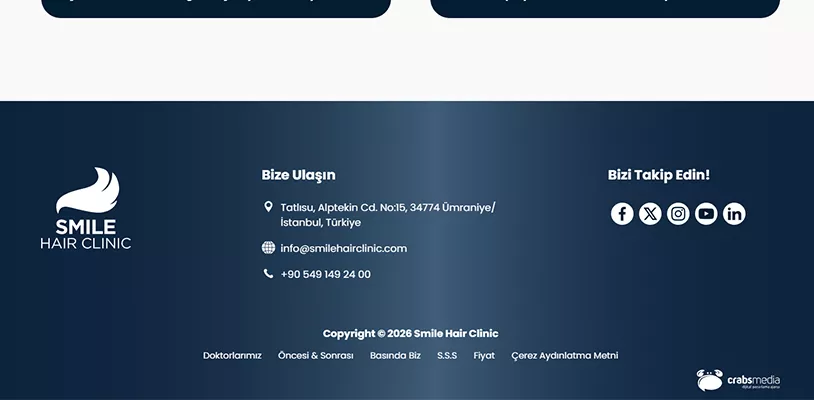 Smile Hair Clinic’s digital transformation was made possible through Crabs Media’s sector-specific experience and technical expertise. We didn’t just build a website — we created a powerful digital platform that connects the brand with its international patient audience. We’re proud to be a part of this shared success and global growth.