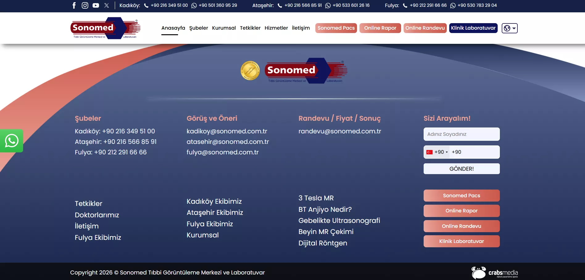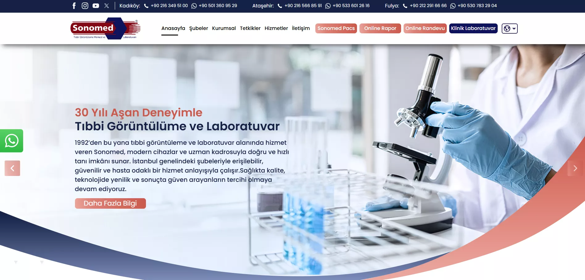 Sonomed Medical Imaging Center wanted to present its diagnostic and imaging services in the digital world with a more reliable, clearer, and more professional structure. The goal was to create a mobile-friendly, fast-loading website that allows patients to easily access the information they are looking for and performs strongly in search engines. The project process began with a detailed analysis of the existing website. Page structures, content language, and technical infrastructure were re-evaluated in line with these goals.