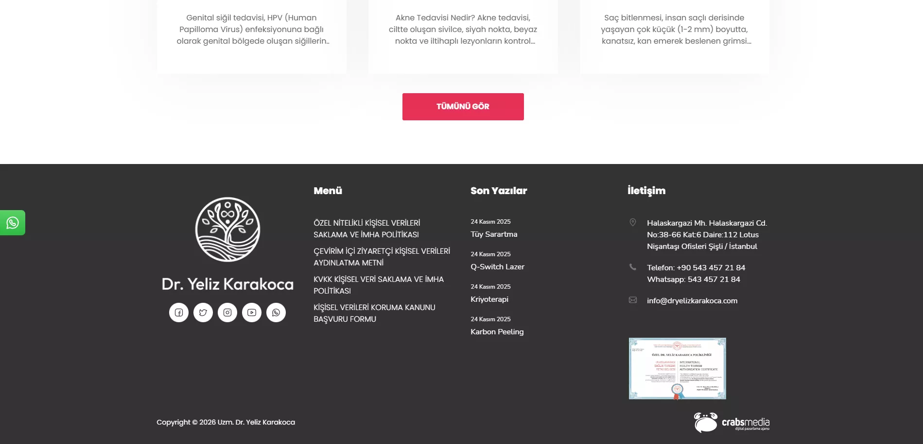 The main goal for Uzm. Dr. Yeliz Karakoca was clear. To have a clean, fast, and reliable website where patients can easily find accurate information. The existing digital structure did not fully meet these expectations. Pages were slow, mobile experience was limited, and search engine visibility was low. The project started with a strong focus on long term digital performance.