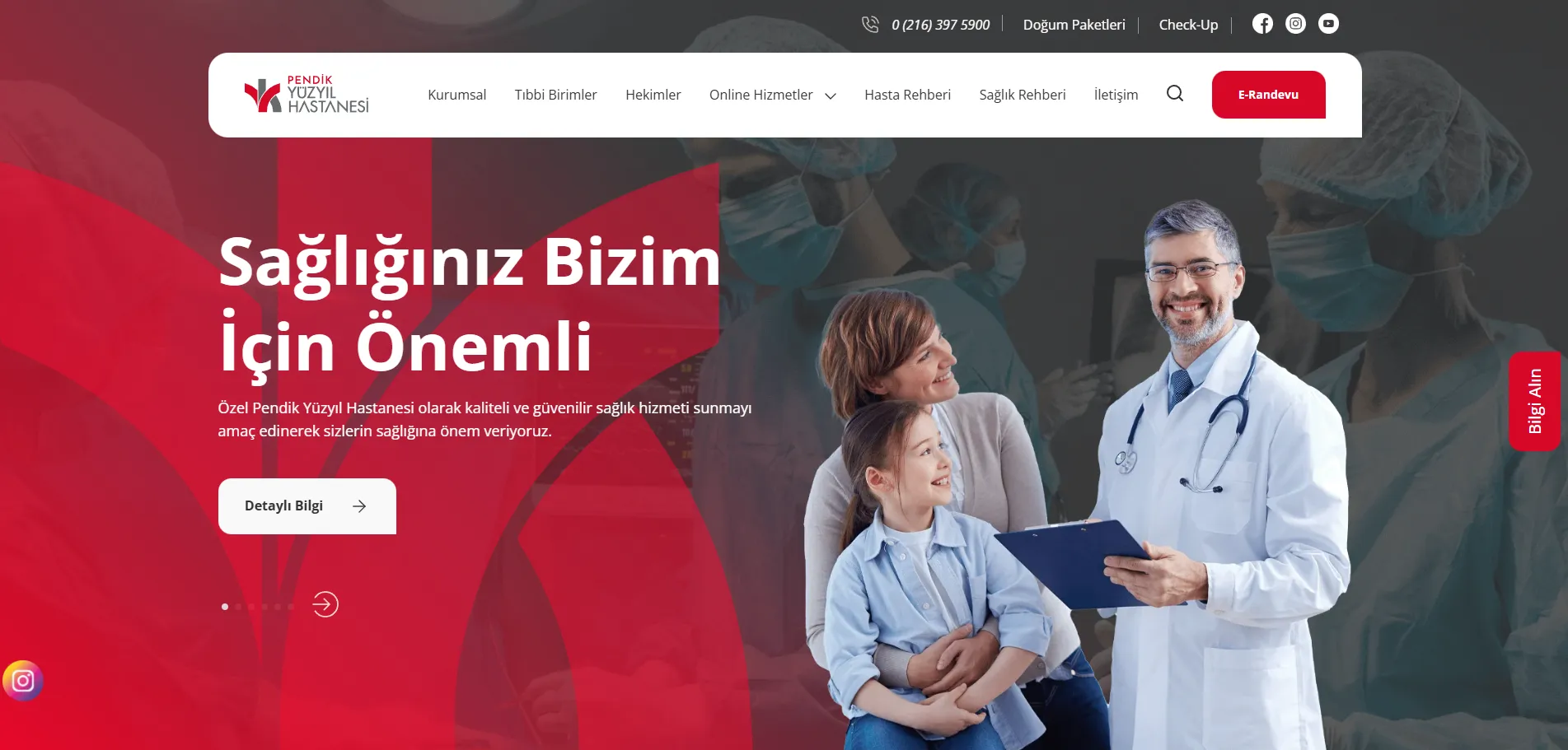 Pendik Yüzyıl Hastanesi, Pendik/İstanbul’daki konumu, 95 yataklı yapısı, 3 ameliyathanesi ve 450’den fazla sağlık personeliyle; estetik ve plastik cerrahi, obezite cerrahisi, tüp bebek ve infertilite, ortopedi ve ağız-diş sağlığı gibi birçok alanda hizmet sunan güçlü bir sağlık markası profiline sahipti. Ana sayfada e-randevu, e-sonuç, doğum paketleri ve check-up gibi farklı kullanıcı ihtiyaçlarına açılan alanların bulunması, dijital tarafta daha planlı, hızlı ve kullanıcı dostu bir yapı ihtiyacını da net biçimde ortaya koyuyordu.