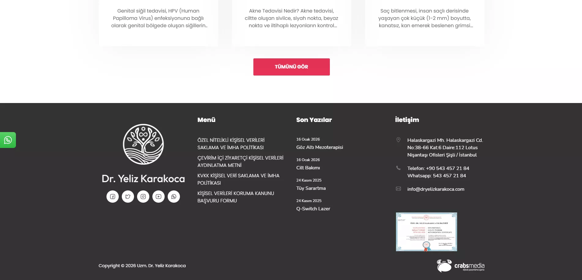 Yapılan çalışmaların ardından Yeliz Karakoca web sitesi daha hızlı, daha erişilebilir ve arama motorlarında daha görünür bir konuma ulaştı. Organik trafik artışı, kullanıcı etkileşimleri ve iletişim taleplerinde belirgin bir yükseliş elde edildi. Bu proje, Crabs Media’nın kişisel marka ve uzmanlık alanlarında sunduğu stratejik, teknik ve içerik odaklı dijital çözümlerinin başarılı bir örneği oldu.